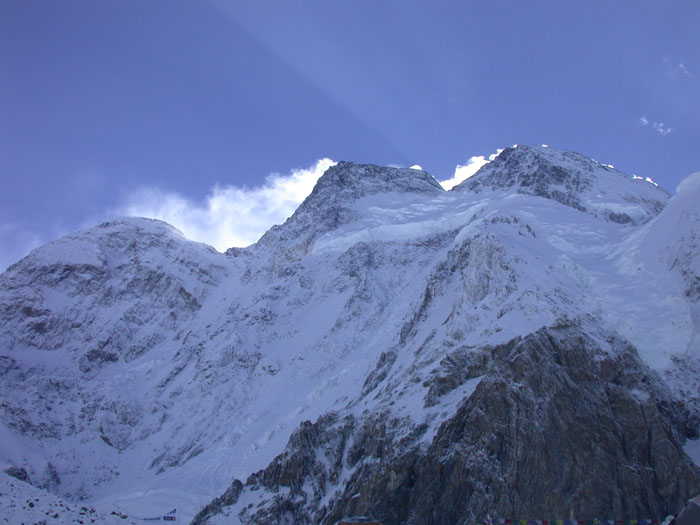 <span style="font-weight: 400;">From above the snowy Banana Ridge, you continue climbing on a series of ridges and reach a platform where camp 2 is generally set up. From here you climb a couple of ice pitches and then up the face going steeper before you reach the shoulder, the site of C3 at 7490m. After three pitches from there, it is a diagonal way across the face from where a traverse leads to the base of the summit pyramid on the East Ridge.</span>